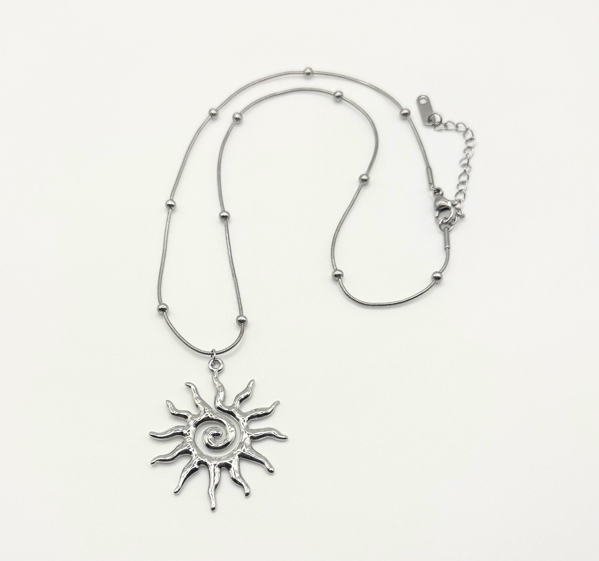Este collar de plata con diseño de sol combina elegancia y simbolismo en una pieza versátil. Elaborado en plata de alta calidad , ofrece durabilidad y un brillo duradero que realza cualquier atuendo. Su motivo solar aporta un toque de energía positiva y un estilo refinado , ideal tanto para looks casuales como formales . Perfecto para quienes buscan una pieza significativa y duradera , este collar se convierte en un accesorio esencial para el día a día o para ocasiones especiales.